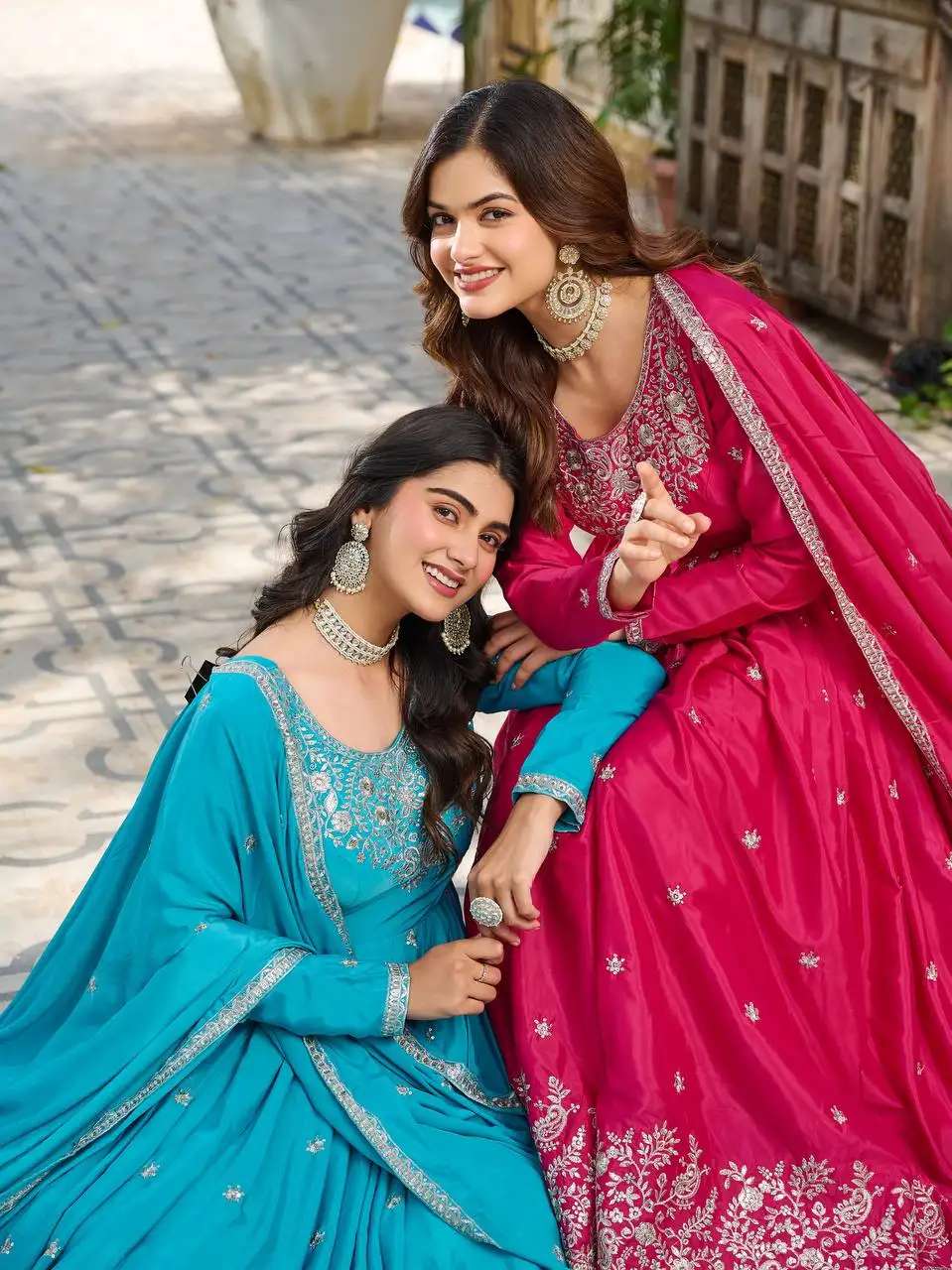 Women’s American Silk Sequence Embroidery Long Anarkali Kurti Gown With Dupatta